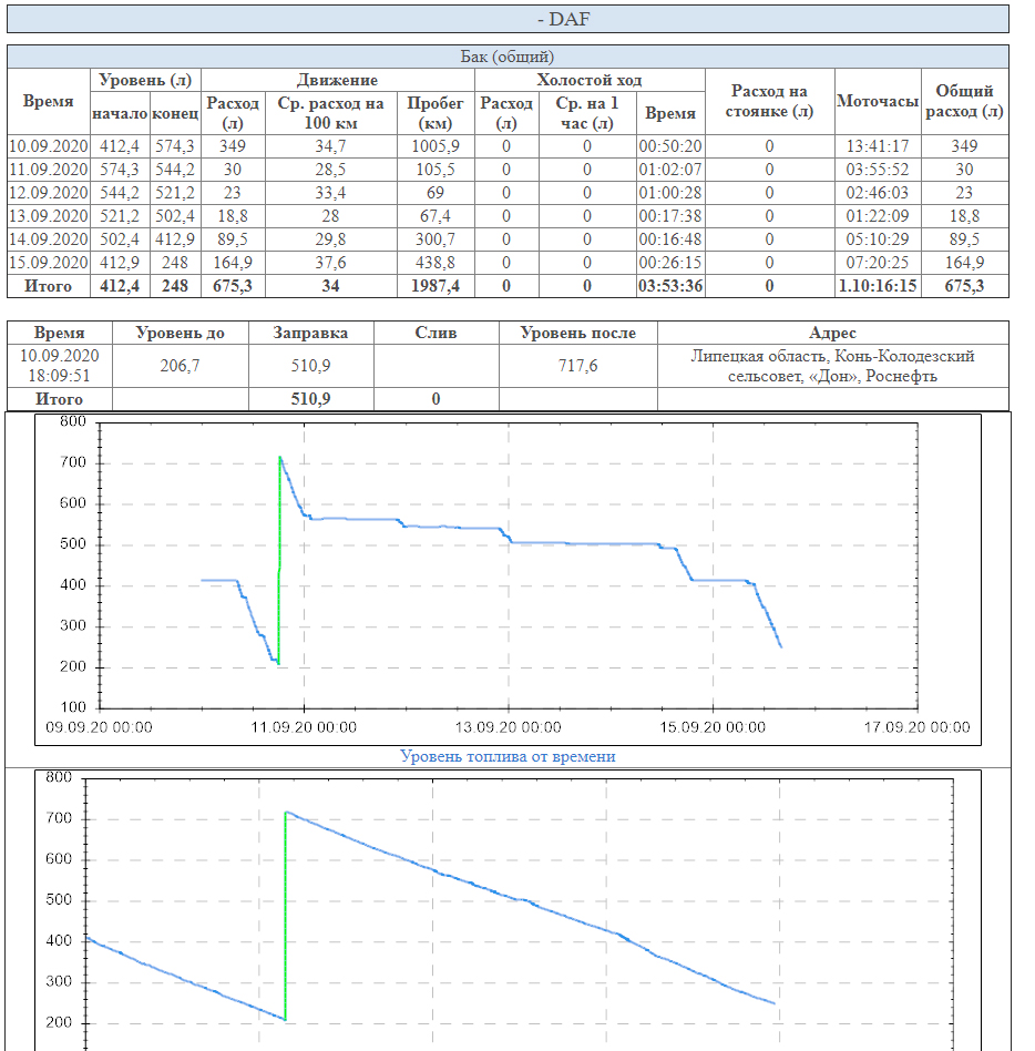 Для компаний, занимающихся грузоперевозками в Краснодаре и по краю в большинстве случаев достаточно обычной установки ДУТ в бак. Контроль расхода топлива по данному методу позволяет получить в табличной форме расход на 100 км, заправки и сливы с указанием их объема и места на карте. По графикам виден расход топлива в зависимости от пробега и времени, что позволяет оценить манеру езды и выявить те случаи, в которых расход повышен. Датчики контроля топлива (ДУТ) бывают проводные и без проводные, работающие по технологии BLE.